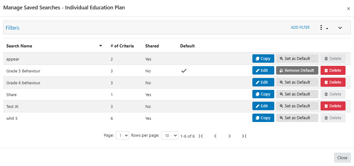 - Creating a Personal Copy of a Shared Search: If another staff member has shared a search with you, a Copy button will be visible.