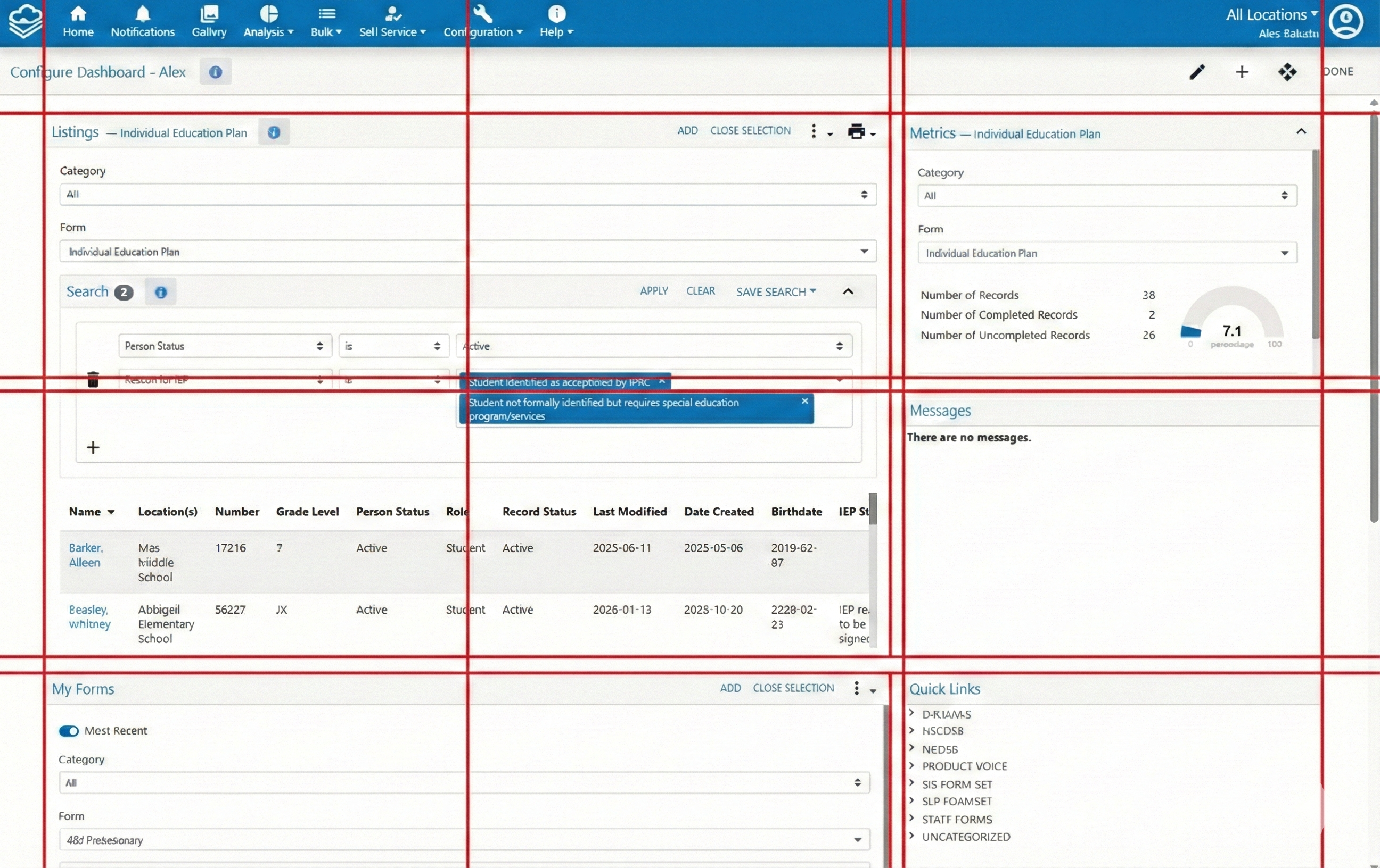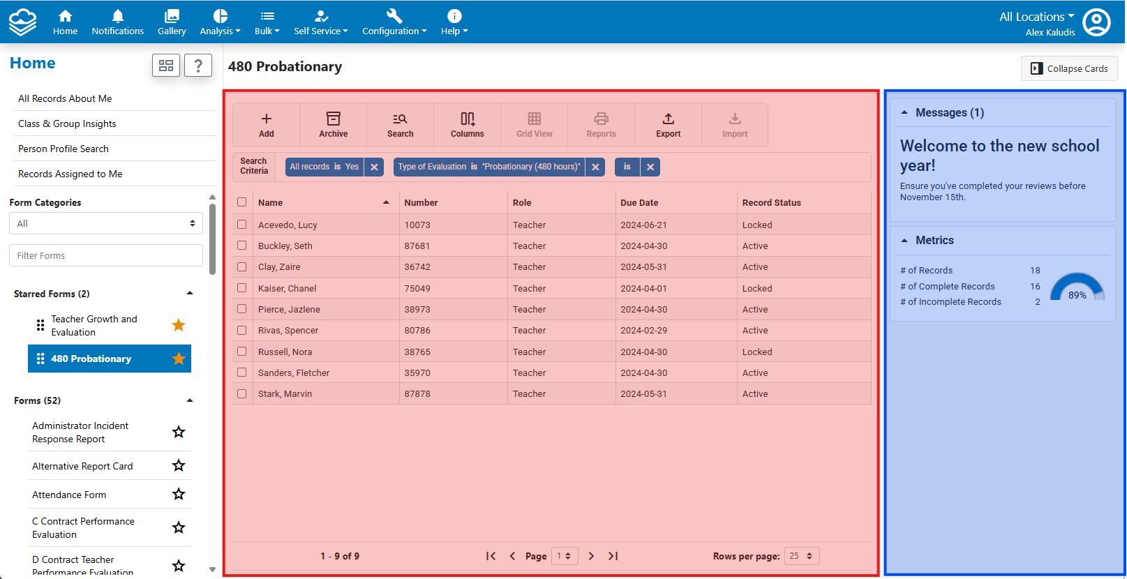 The "My Forms" card has evolved into two tools. The Records About Me card shows your assigned records for the current form. For a global view of all your assigned records across all forms, use the All Records About Me page in the side menu.