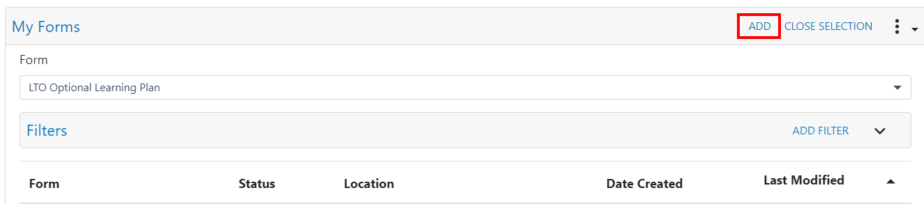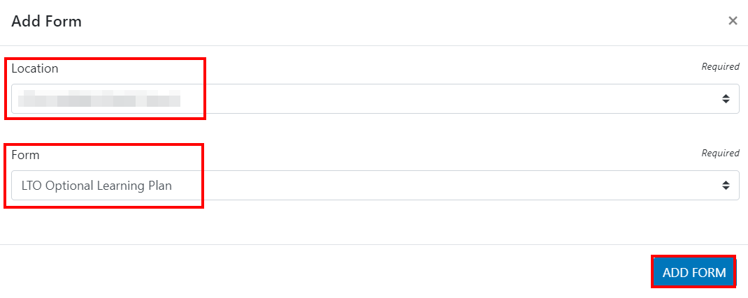 Within the pop up, select your location and which form you'd like to create your record for, then click Add Form.
