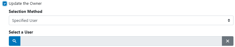 You can Update the Owner. The Selection Method options are by current user, specified user, specified role or record value. Each one of those items are available in the Selection Method drop down and when chosen, open up to other options that allow you to set up that option accordingly.