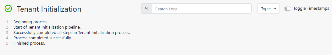 This is the main panel on the right where the detailed output for a selected step is displayed. When you click a step in the Integration Steps Panel (like "Tenant Initialization"), this area populates with its specific log messages.