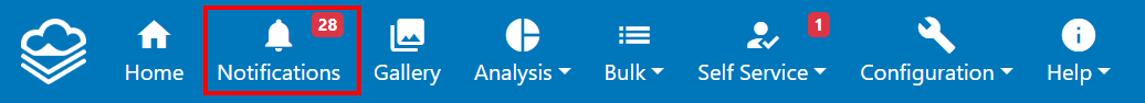 If the Notification Board has been enabled for your role, it can be accessed via clicking on the “Notifications” menu item in the top left corner of the Dashboard. The red number beside the bell icon indicates the total number of unread notification you have received.