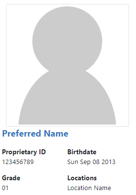 On the left side of the Person Profile, you will find the individual's demographic details. This section includes their photo (if available), preferred and legal names, Proprietary ID, birthdate, and locations. For students, their grade level is displayed, while for staff members, their role within the organization is shown.