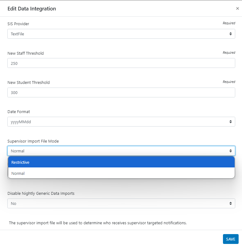 The "Normal" setting is used when you want the supervisor file to manage supervisor-based notifications without limiting access to records.