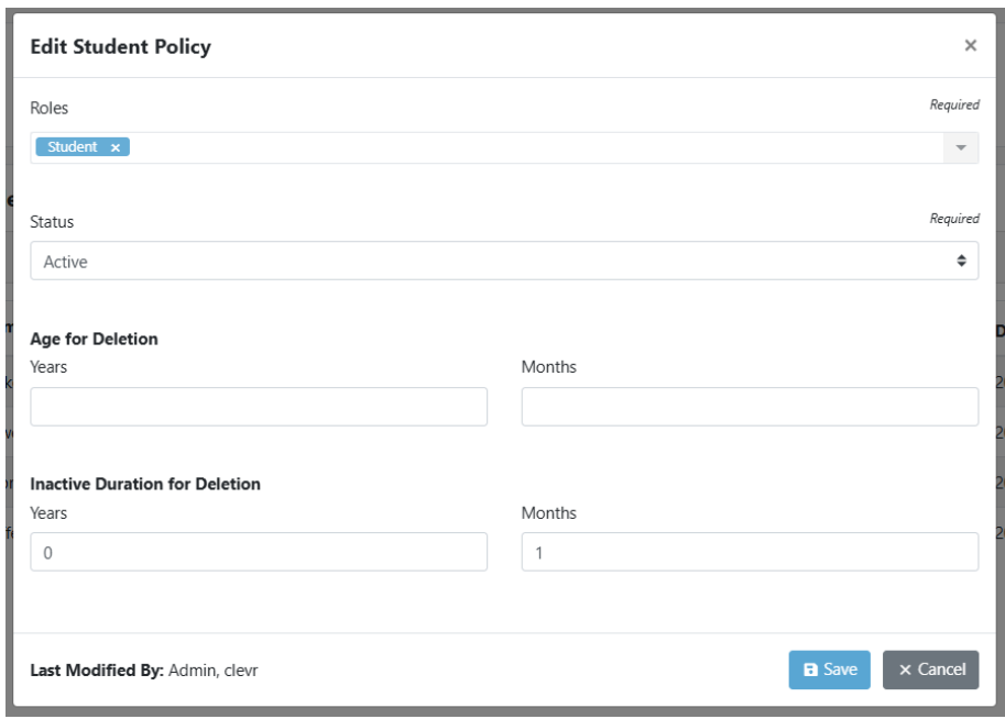 This screen allows you to define the specific rules that determine when student data will be deleted.